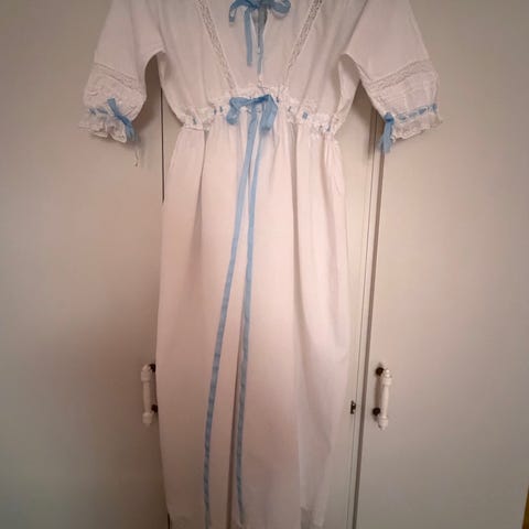 Flott vintage/antikk dåpskjole – nydelig mønstret stoff