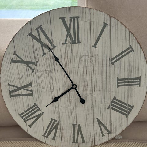 Ny og ubrukt vegg klokke med vinsj. 73x33x4 hm (batteri 1x2AA)