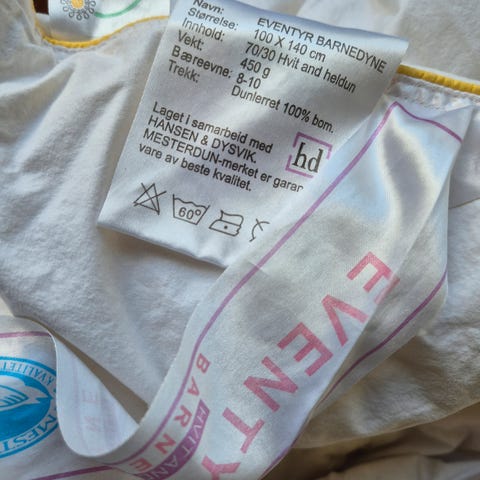 mesterdun / barnedyne / barnepute / dyne / pute / barn / baby / seng / sengetøy / nytt / ubrukt / dundyne / dunpute