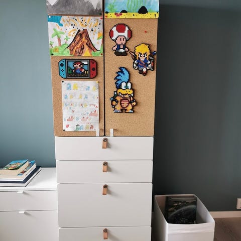 Kjøpte dette brukt selv for kort tid siden, men det passet dessverre ikke på rommet det ble kjøpt til, så jeg selger det videre. Det er et fint skap, alt funker som det skal, og det har et speil på innsiden av den ene døren. Litt selvlysende stjerner på dørene og et klistremerke på siden, som kan tas vekk.