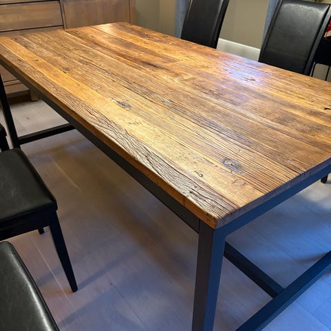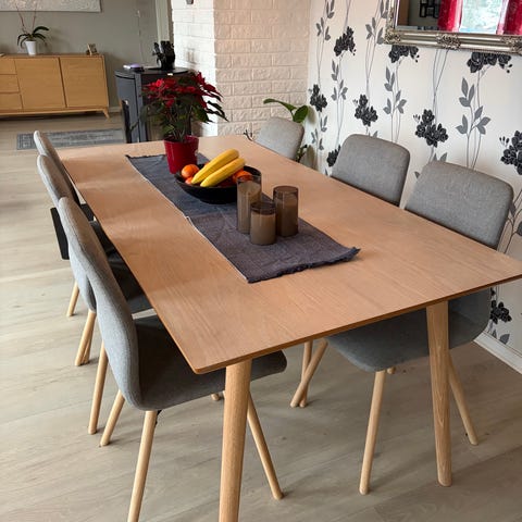NB! Stearinlysmerker på bordoverflaten. Selges derfor rimelig. Kan sikkert vaskes av med en spesifikk rengjøringsmiddel.