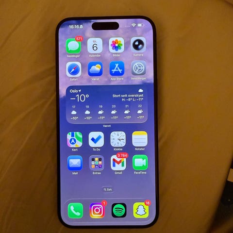 Selger en iPhone 15 Pro Max 256 GB, kjøpt i Norge og brukt med stor forsiktighet.