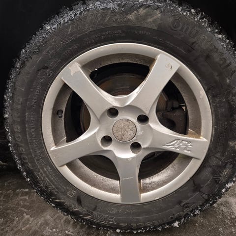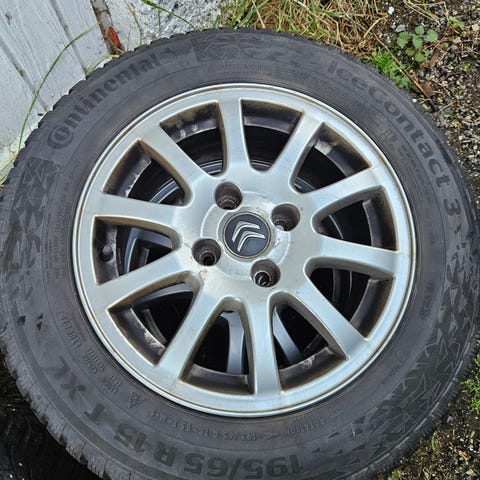 Selger et sett hjul stått på 2012 Citroen Berlingo. Continental Van contact Viking dekk. Ca 5-6,5mm mønster på de. Ene dekket er litt over 7mm samme dekket har også litt merke i sideveggen.