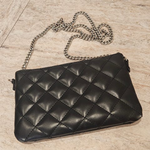 Parfois Dame Veske laget i kunstlær med sort farge. Vesken har en kjedelås og klaff med knappelukking. Passer til daglig bruk og mindre eiendeler