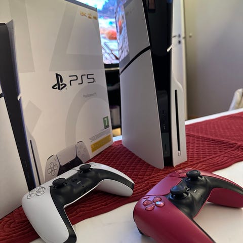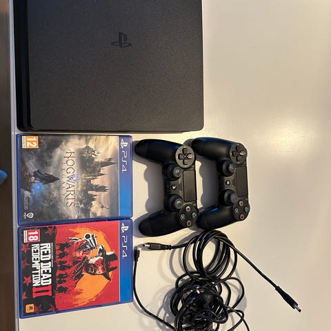 Sony PlayStation 4 spillkonsoll med hvit kontroller og strømledning