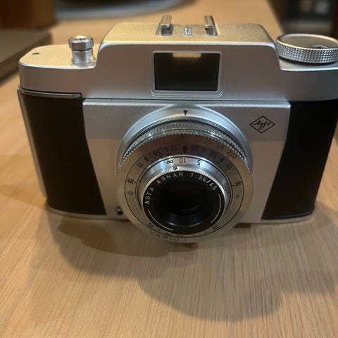 Vintage 35mm film kamera fra Agfa. Jeg kan ikke garantere at kameraet fungerer helt som det skal, men kameraet egner seg godt til dekorasjon.