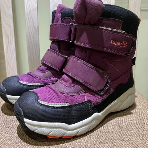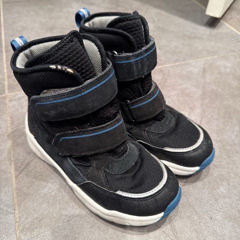 Superfit barn vintersko for gutt i størrelse 32. Skoene er blå med blå detaljer og har en slitesterk såle med godt grep. De har borrelåslukking for enkel justering og god passform.