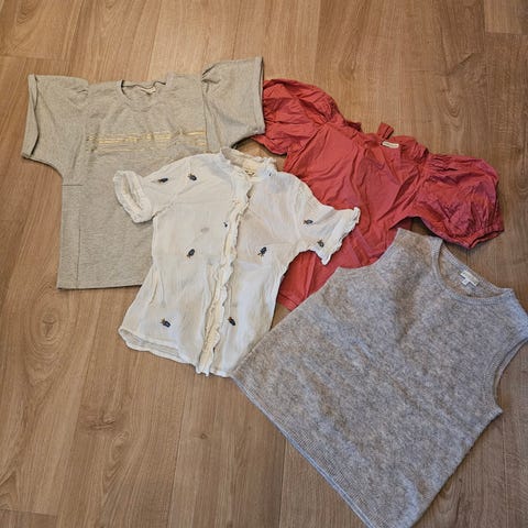 Selger pakke med 3 veldig flotte bukser til jente. Fra venstre er det str 146, 152 og 164. De to ytterste er kule cargobukser og den i midten jeans med dekorative strassdetaljer foran. Alle tre er av nesten 100 % bomull og har mulighet for innstramming inni livet med strikk og en knapp. Vil si de er ganske normal i størrelsen. Pent og lite brukte. Første og andre bukse er fra HM, siste i rosa er fra Bonprix. Selges helst samlet, men kan vurderes solgt separat for 100kr stk.