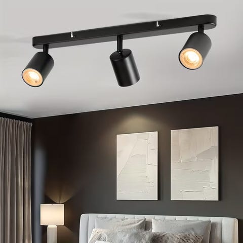 Kan bruke dimbare ledpærer, så kan den dimmes. 4 stk spotter på hver lampe som kan vinkles i alle retninger, i tillegg kan armene vinkles også. Kan fint brukes på vegg også, eks i trappeoppgang.