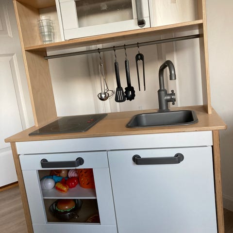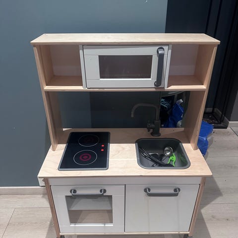 Ikea lekekjøkken selges hbo 500kr. Bildet av samme kjøkken da det står på et loft nå.