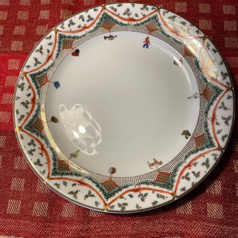 Royal Copenhagen tallerken med tradisjonell blå blomsterdekor. Tallerkenen er laget i porselen og har et klassisk design som passer til ulike anledninger.