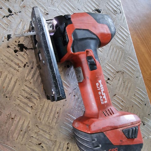 Hilti elektrisk stikksag med tilhørende boks. Verktøyet har ledning og er egnet for presisjonskutting i ulike materialer.