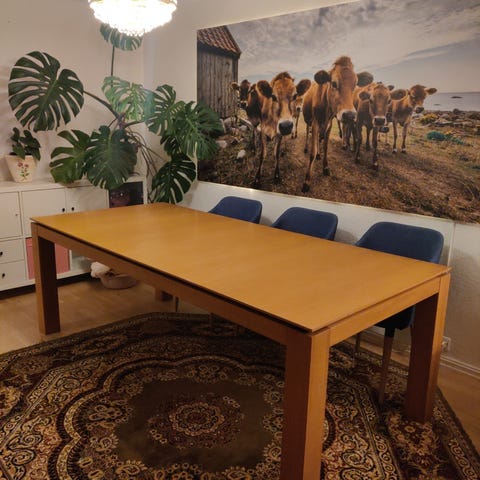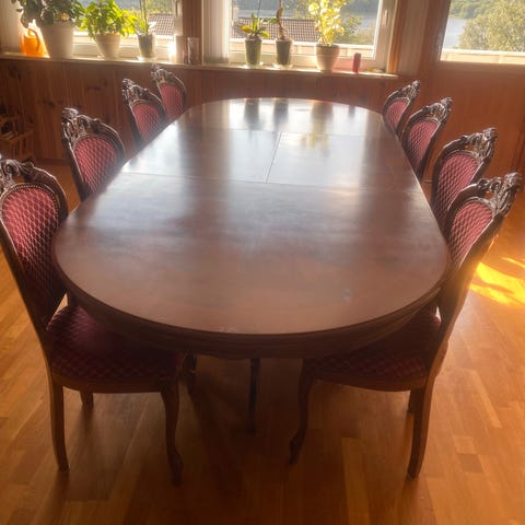 Selger pent brukt spisegruppe med Nagano spisebord fra Skeidar og 4 stk Surf spisestoler fra Bohus.