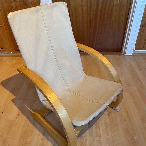 IKEA Strandmo Lenestol til barn i grått stoff. Trenger en vask, men skal bli mye bruk igjen.