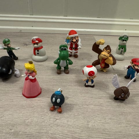 Actionfigurer fra Marvel Comics (Spiderman) selges samlet. Den største figuren er godt brukt med noen hakk og noe slitt maling. Den mellomste figuren er ca. 13 cm høy.