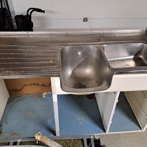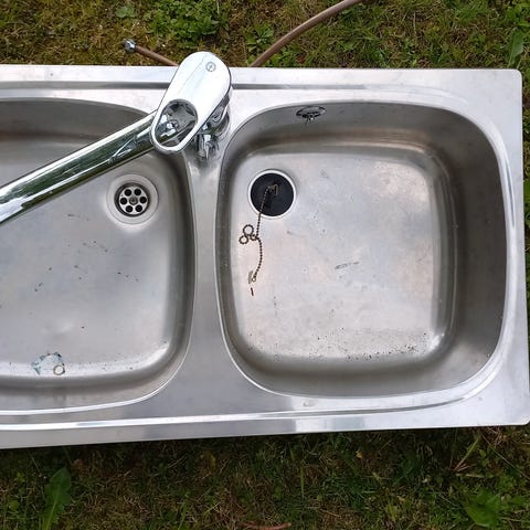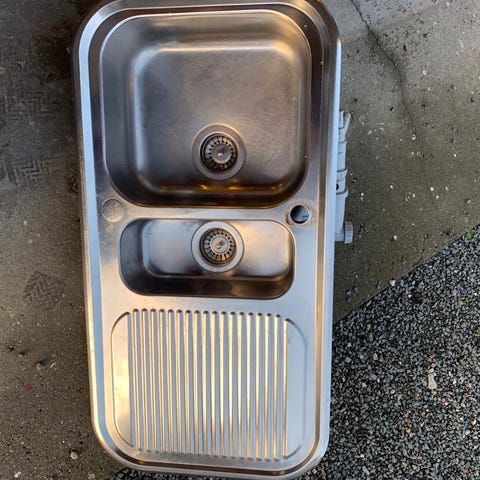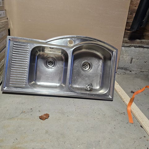 Kjøkkenvask i rustfritt stål med integrert armatur. 60x120