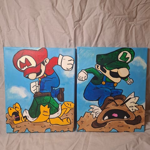Lerret på ramme, hvert bilde er 50,5 cm x 75,5 cm.