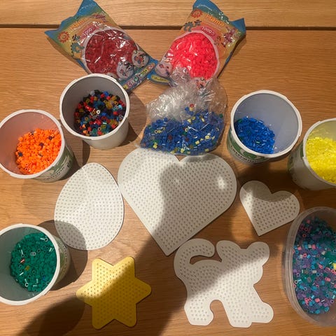 Er brukt en del, men er mye igjen. Små perler og store for små hender :)