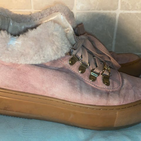 Rosa semsket vintersko med pelskant. Lite brukt.