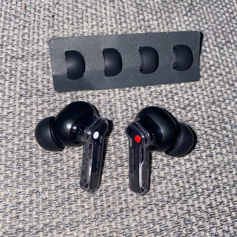 Selger mine Nothing Ear (2) kjøpt 12.06.2024 for 1790 kr. Lite brukt, fungere som de skal. Originalemballasje og silikonpropper (S/M/L) medfølger. Riper kun på etuiet, se bilder. Elektronisk kvittering medfølger.