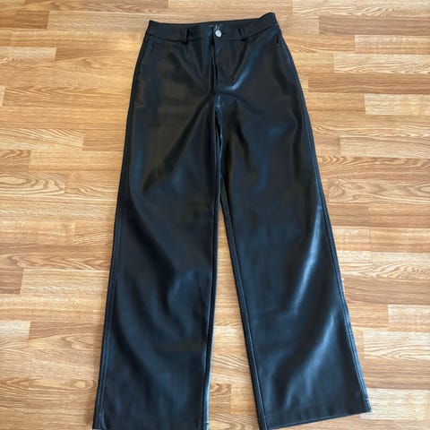 Bik Bok bukser i imitert skinn, svart farge, størrelse 38. Bukser for kvinner laget av semsket skinn, designet for en komfortabel passform og stil.