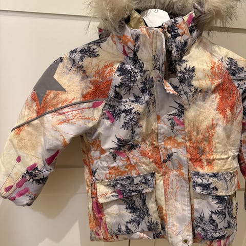 Blomstrete ytterjakke fra merket Molo, str 110. Vindtett, vannavvisende med vannsøyle 12000 mm.