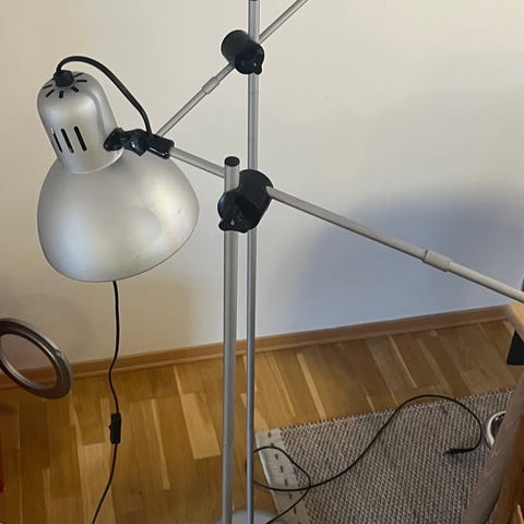 Gir vekk en IKEA-lampe. Dimmbar og egentlig ganske stilig. Laget med plast som er innenfor skjermen var begynt å bli ødelagt, så det er fjernet. Lampen kan brukes som den er, men jeg ville personlig kjøpt ny skjerm eller lagt inn nytt belegg innenfor skjermen.
