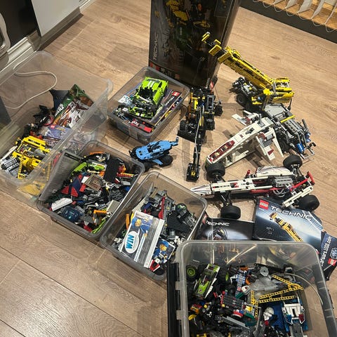 LEGO barnleker med ulike sett og deler. Inkluderer flere kjøretøy, flere minifigurer og ulike byggeelementer. Også et Super Mario sett.