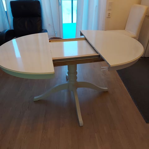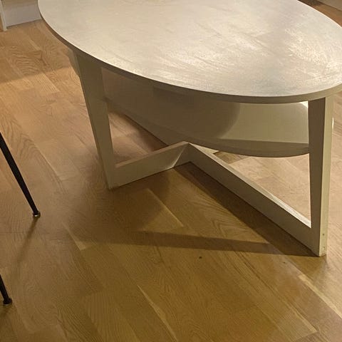 Bordet er 76 cm i diameter og 46 cm i høyde. Kan bli et fint bord med litt maling