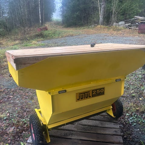 Selger denne sandstrøeren. Ble byttet gummi og lavere for 2 år siden. Nesten ikke brukt. Selges da den ikke blir brukt. Kan byttes i skyvsramme med skjær må være løft på ramma så det ikke er laster på traktor.
