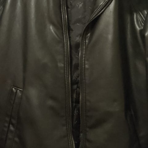 Klassisk skinnjakke fra Armani. Pent brukt, det er slitt et hull i foret under den ene armen (oppe til høyre på bilde nr 2), ellers perfekt stand.