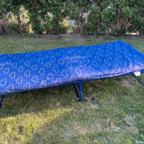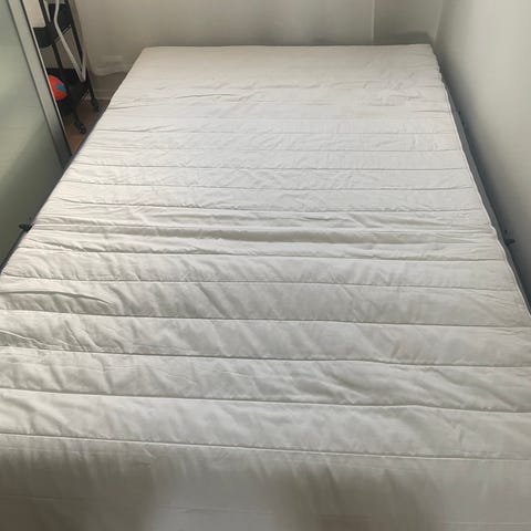 Senga er i veldig god stand. Eneste er at stoffet kunne hatt en rens.