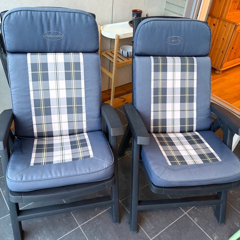 Utemøbelsett bestående av tre svarte stoler med armlener. Stolene har et nettmateriale for sitte- og ryggflate, egnet for utendørs bruk.