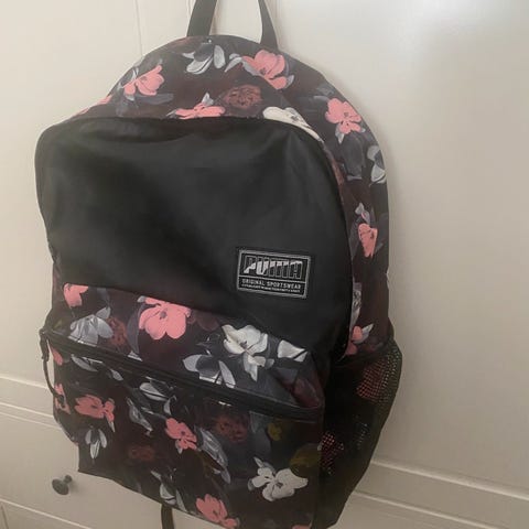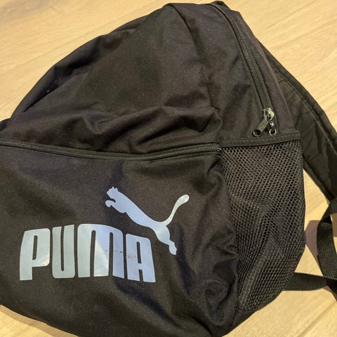 Puma ryggsekk i grønn farge, laget av andre materialer. Designet for unisex bruk.