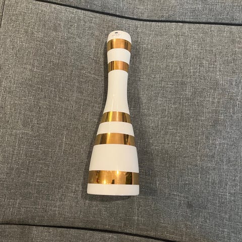 Kähler lysestaker med dekorative striper i hvit og sølv. Laget av keramikk med et moderne design. Passer til dekorasjon i ulike rom.