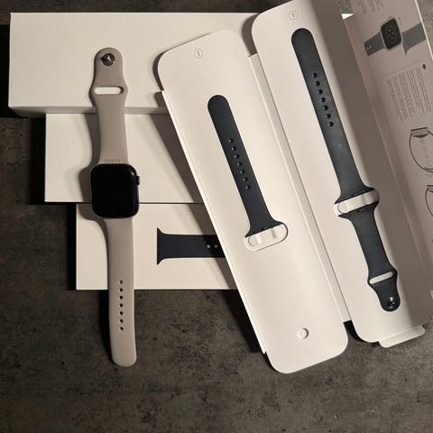 Samsung watch 8 selges pga overgang til apple. Selges med hvit reim (den originale) den grå er kjøpt fra samsung og ladelkabel samt boks m/info.