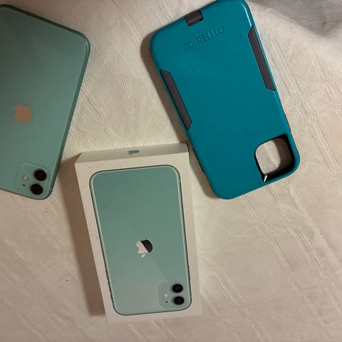 Apple iPhone 11 mobiltelefon med 64 GB lagringskapasitet. Enheten har en hvit farge og leveres i original eske. Telefonen er utstyrt med standard funksjoner for iPhone 11-modellen. Brukt pent i 3 år av jente. Finner ingen synlige merker.
