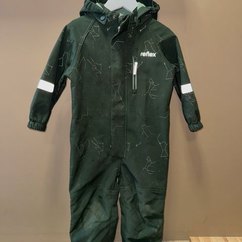 Dressen har noen merker etter lek og moro. Den er hel og pen, med intakte forstrikk. Ekstra solid stoff rundt klær og baken.