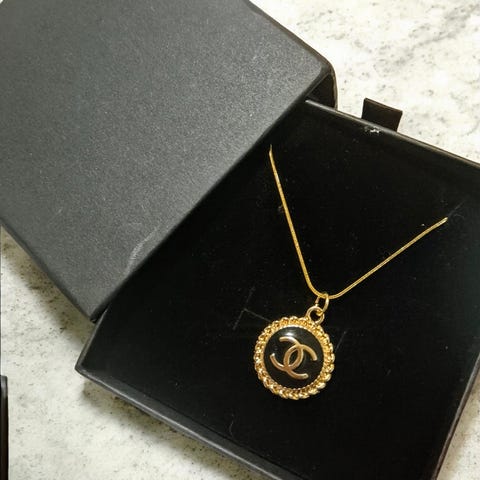 Nydelig gull tonet og Gullbelagt kjede fra Chanel! Re-designet fra et Vintage Chanel anheng. Lenken er en lengre Gullbelagt Rustfritt stål, allergi vennlig og tåler vann!