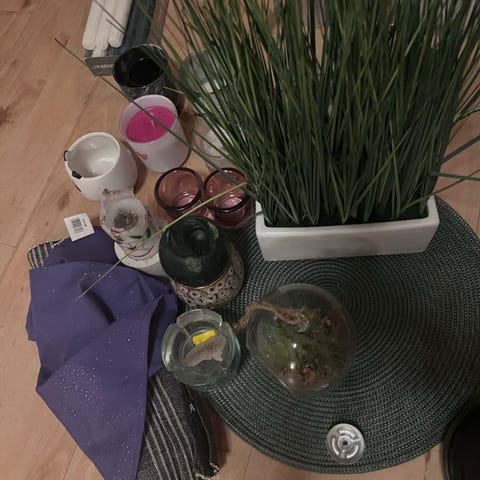 Gir bort juletre i plast. Med lys, men uten pynt. Ca. 180 cm. I 3 deler.