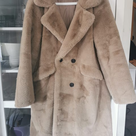 Kåpe selges i grå «teddy» stoff - str l