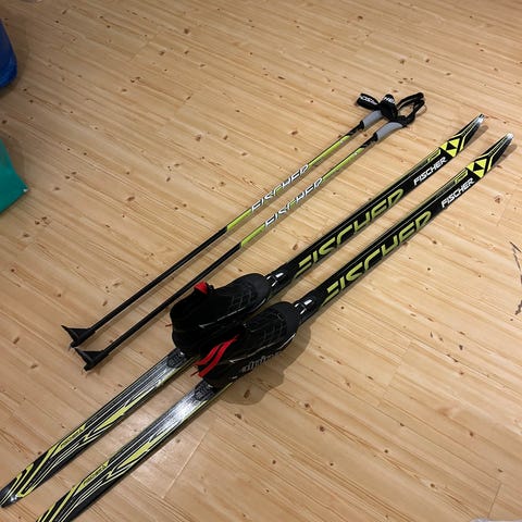 Jeg er 170 høg, ca 63 kilo. Ønsker å bruke skiene fortrinnsvis i oppkjørte løyper. Flott dersom bindinger og staver følger med.