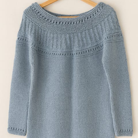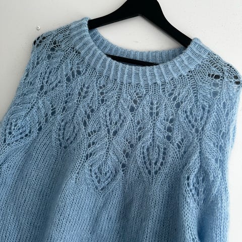 Genser, sweater, strikket, håndlagd, håndstrikket, blå, grønn, green, blue, ull.