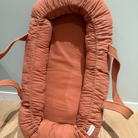 Pent brukt babynest fra Liewood. Ingen flekker. Selges rimelig da den har en liten rift i stoffet ved håndtaket, men det har ingen betydning for bæring etc.