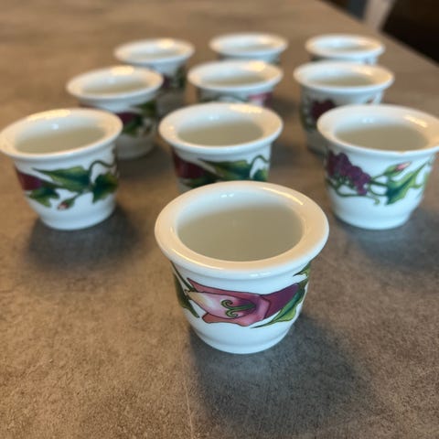 Porsgrund Porselen drammeglass/shotglass. Mønsteret er ukjent.