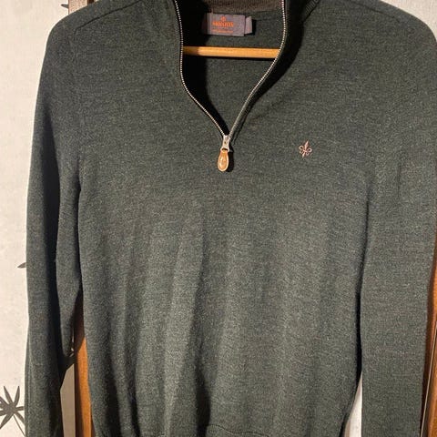 Pent brukt genser fra Morris Stockholm, klassisk half-zip modell. Myk, varm og behagelig, med det karakteristiske lilje-logoet på brystet. Vasker 2 ganger. Litt liten i størrelse/slim modell.