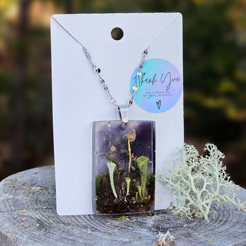 Unikt halskjede med planter/sopp fra naturen