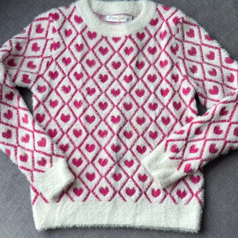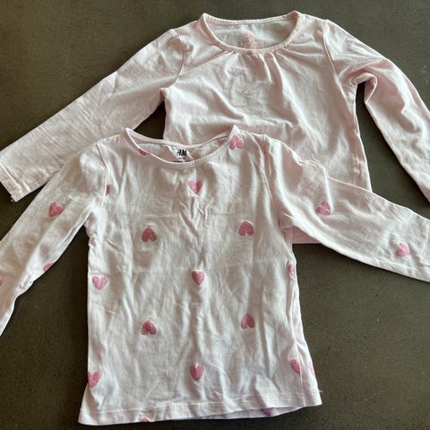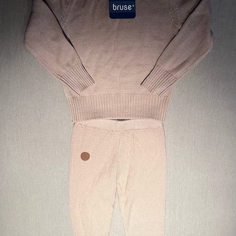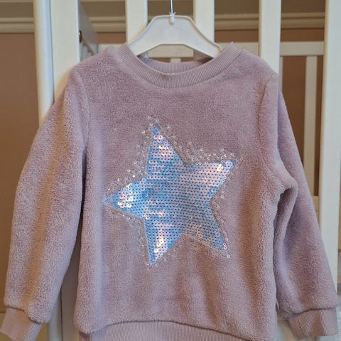 To tykke «pusete» gensere. Den rosa fra HKM kids og den brune fra Tiny trolls. Brun strl 104, rosa strl 98/104.