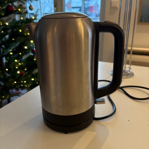 Lite brukt vannkoker gis bort da den ikke blir brukt.