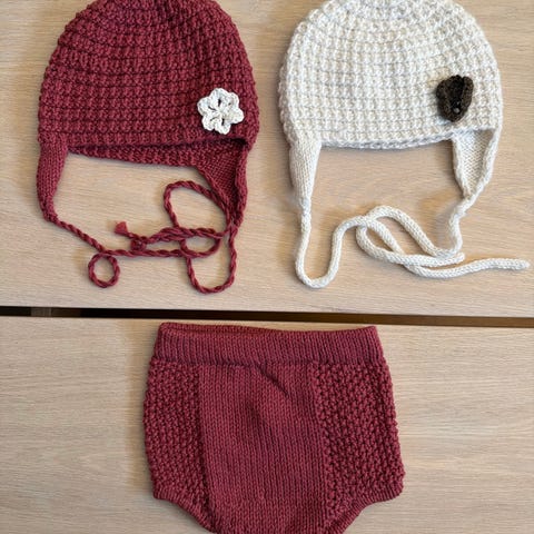 Hjemmestrikket sett til baby. Str 6 mnd.